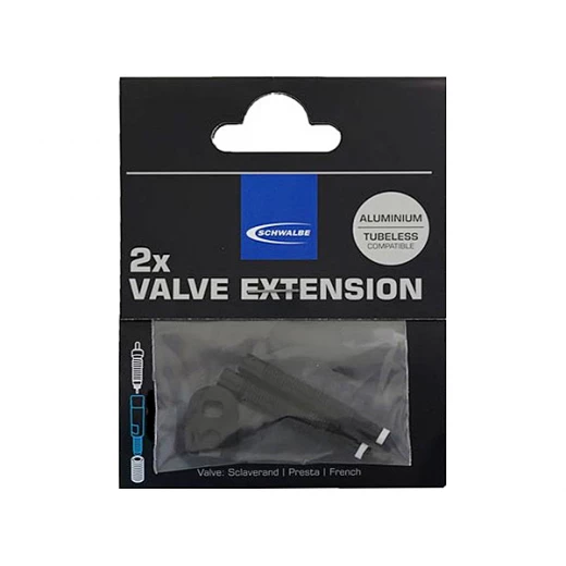 Livrée avec un démonte obus, la paire de prolongateurs de valves de 65mm de Schwalbe est esthétique, elle est compatible avec les valves Presta de chambres -à-air classiques, les valves de boyaux ou tubeless.