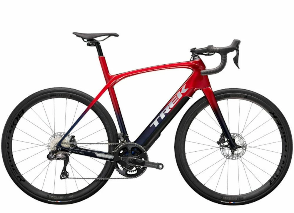 Le montage Domane+ LT 7 est un modèle plus haut de gamme dans la série, avec un groupe de transmission Shimano Ultegra R8170 Di2 électronique pour un changement de vitesses fluide et précis, ainsi qu’une paire de roues de carbone Bontrager Aeolus Pro 3V qui aident à alléger le vélo et augmenter la rigidité pour une meilleure efficacité de pédalage.