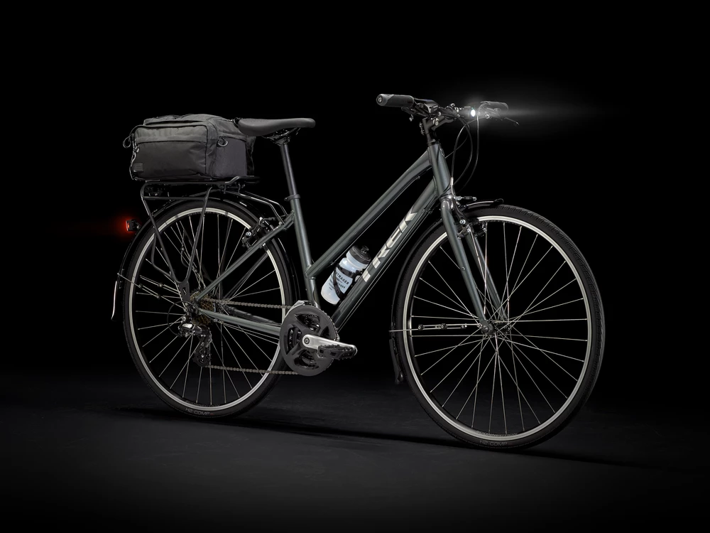 Le FX 1 de Trek est un vélo hybride polyvalent d’un excellent rapport qualité-prix. Il est doté d’un cadre en aluminium léger à 21 vitesses qui garantit un rapport optimal pour votre terrain. Il est monté sur de solides roues à double paroi, ce qui le rend durable et résistant. De plus, il est facile d’y installé des supports, des garde-boues, des lumières, des cyclomètres, une béquille, et plus encore. De plus, ses larges pneus permettent de rouler facilement, que ce soit sur des pistes cyclables ou des sentiers plus fermes. Le cadre possède un tube horizontal rabaissé, idéal pour ceux qui préfèrent ne pas l’enjamber.