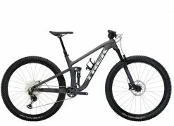 La série Trek Top Fuel est conçue pour le cycliste de Cross Country à la recherche d’un vélo qui pardonne plus et permet de s’attaquer à des pistes et obstacles plus exigeants. La géométrie du nouveau cadre est davantage ouverte pour plus de stabilité en descente, avec un débattement 120 mm à l’avant et l’arrière et une tige de selle télescopique qui permet de s’attaquer à pratiquement n’importe quelle piste, sans sacrifier l’efficacité de pédalage et la vitesse. Le triangle arrière possède la technologie Trek Mino Link qui offre plus d’options de géométrie pour une variété de cyclistes et la protection de cadre Knock Block 2.0.