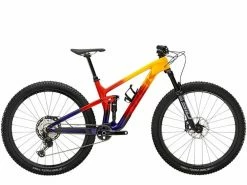 La série Trek Top Fuel est conçue pour le cycliste de Cross Country à la recherche d’un vélo qui pardonne plus et permet de s’attaquer à des pistes et obstacles plus exigeants. La géométrie du nouveau cadre est davantage ouverte pour plus de stabilité en descente, avec un débattement 120 mm à l’avant et l’arrière et une tige de selle télescopique qui permet de s’attaquer à pratiquement n’importe quelle piste, sans sacrifier l’efficacité de pédalage et la vitesse. Le triangle arrière possède la technologie Trek Mino Link qui offre plus d’options de géométrie pour une variété de cyclistes et la protection de cadre Knock Block 2.0.